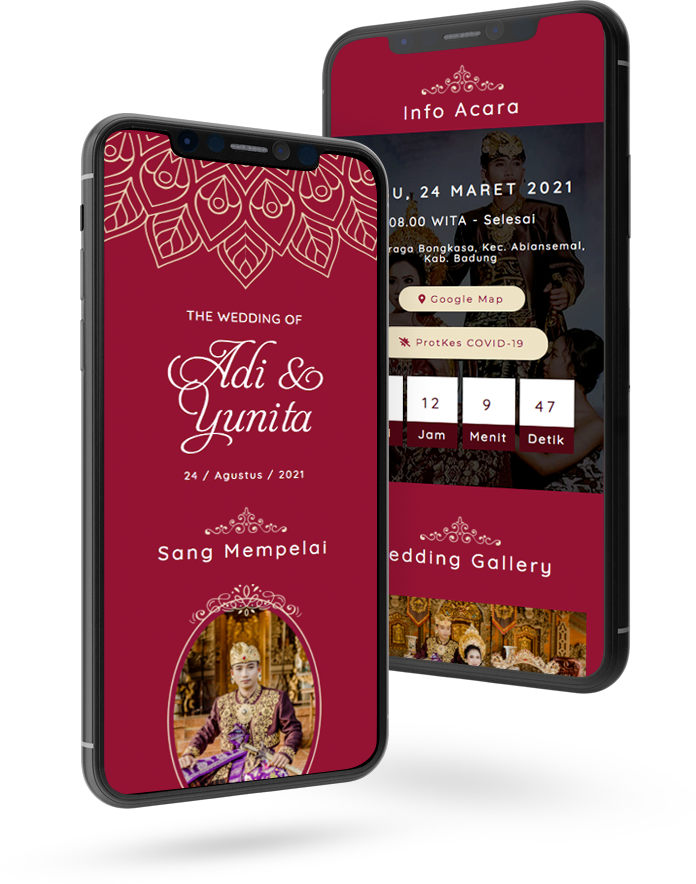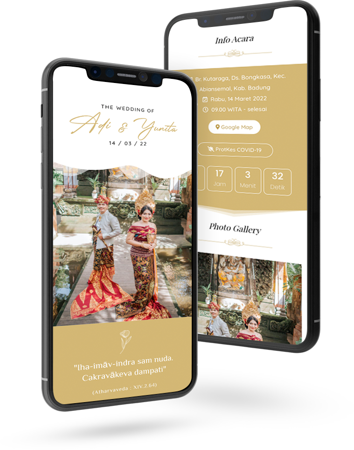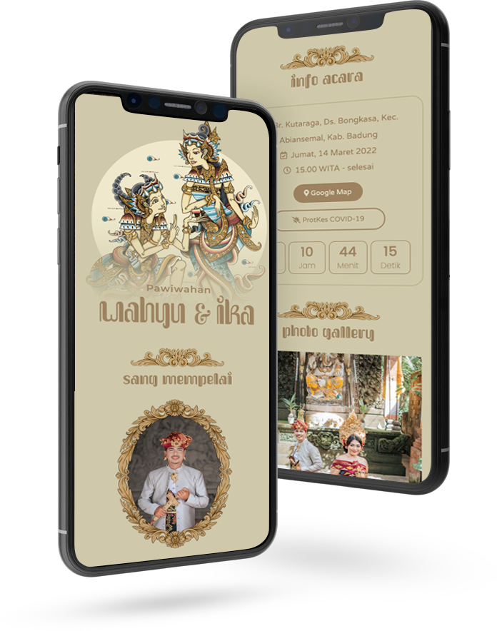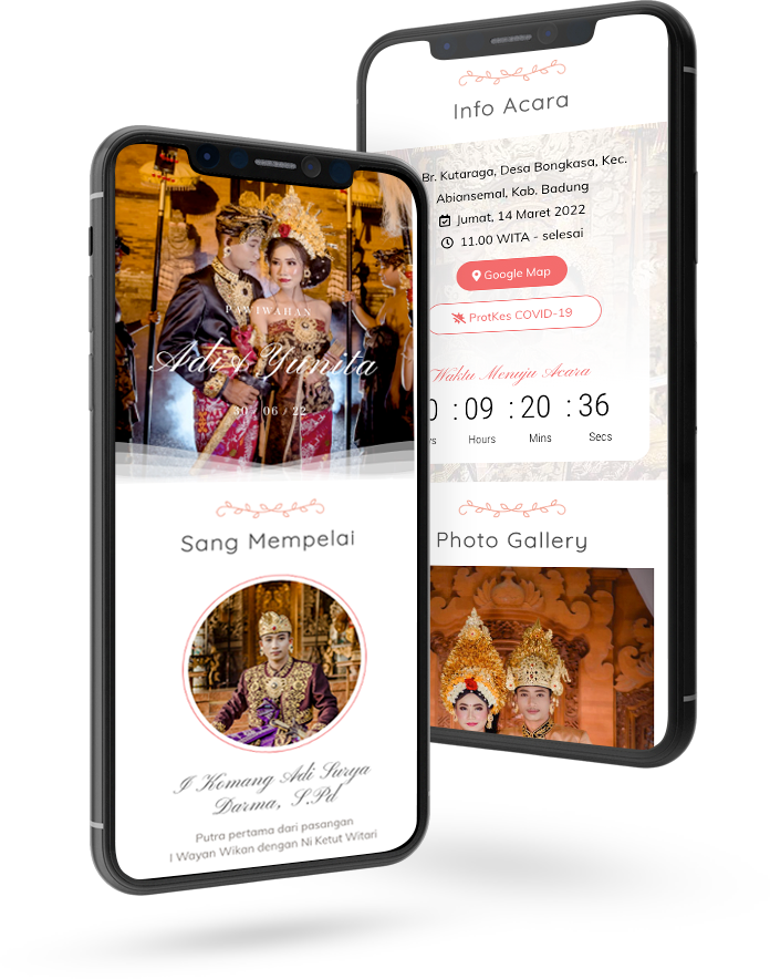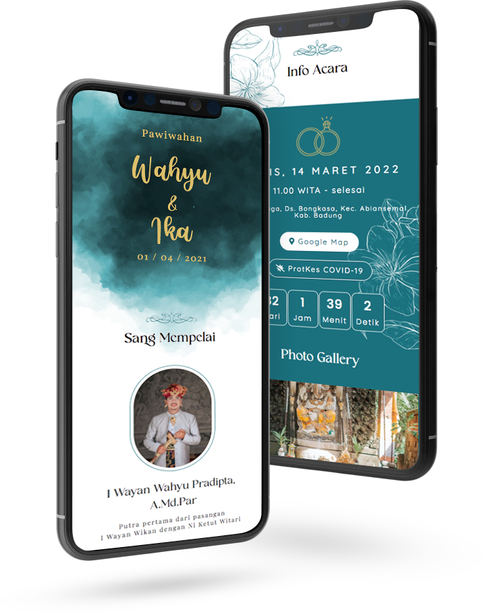 Pawiwahan.id menyediakan jasa pembuatan undangan digital berbasis website dan video animasi, yang praktis dan mudah untuk digunakan maupun dibagikan. Undangan pernikahan digital menjadi pilihan tepat untuk para calon pengantin masa kini di Bali, Indonesia untuk menyebarkan hari bahagia pernikahannya.